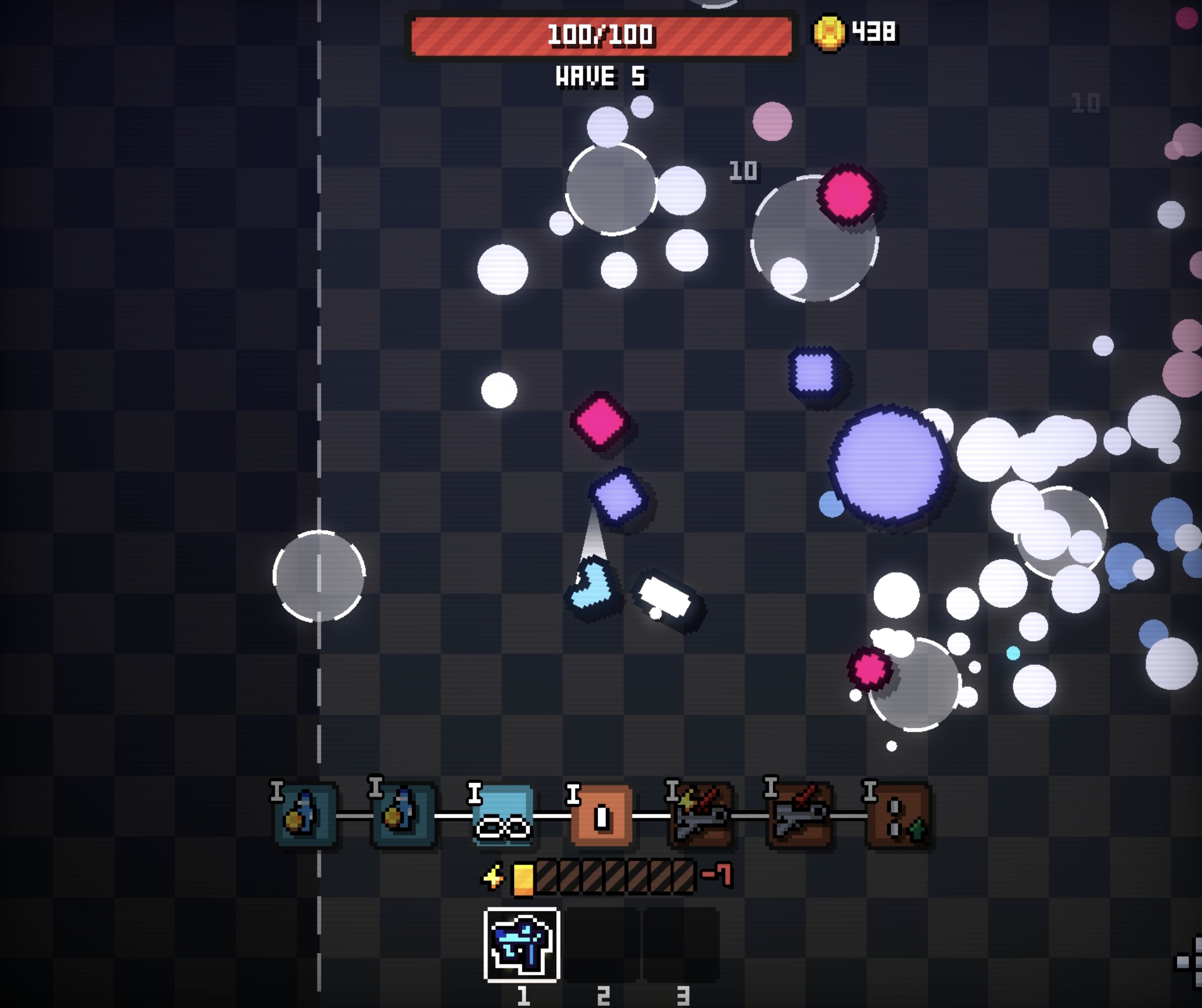 After some time, I decided to focus on movement. Conditions that make you move are my exploration of the movement mechanics in vampire survival games.