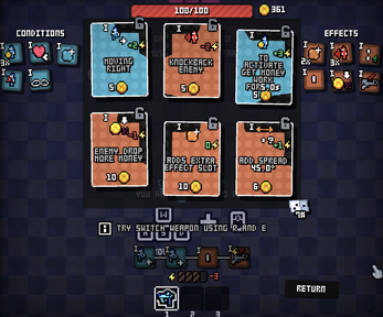 Every run brings new unlocks! Level up to expand your arsenal of available components. With dozens of conditions and effects to discover, no two runs are ever the same.