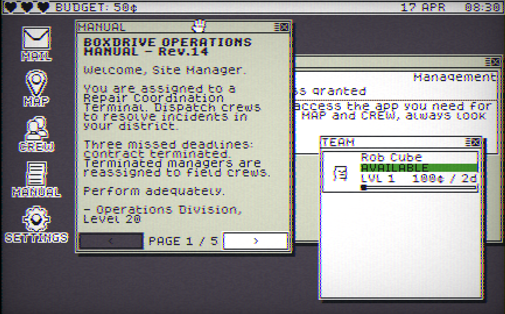 It felt a bit lacking in finality.. I think the goal is to last a week, but as an honest player, I skimmed almost all the text (and my English is lousy) and somehow didn’t feel like I was making any progress. My point is, if UI had n/7 somewhere, it might have been more visual.